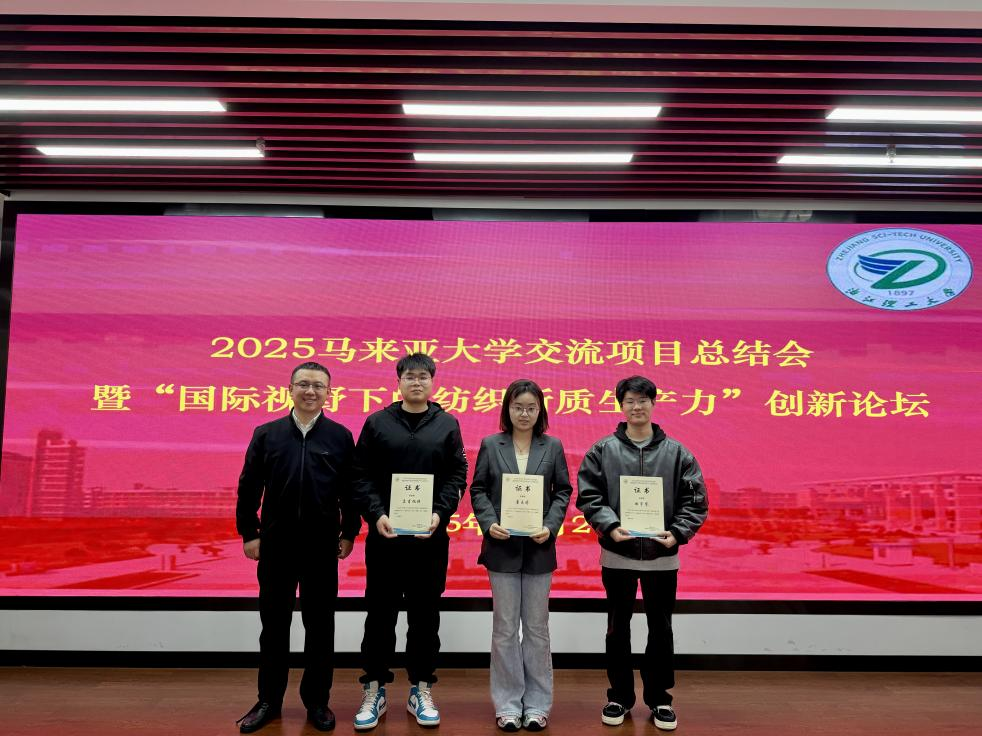 在致远厅召开了2025马来亚大学交流项目总结会暨“国际视野下的纺织新质生产力”创新论坛,学院副院长刘国金,学术副院长宋凯利,学工办主任侯霞,外事秘书倪端,专任教师孙菲、侯雪斌、翟世民、朱维以及参加交流项目的同学们共同出席了本次会议。